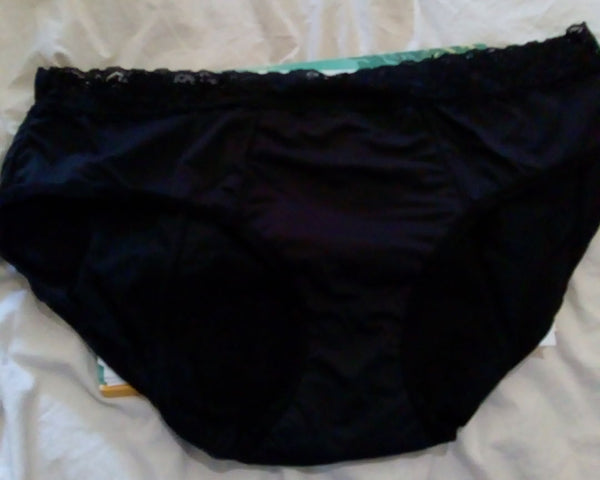 J'ai acheté un premier lot lors de mes dernières règles, et j'avais testé cette culotte pour mon j4. Pour mon second test, j'ai testé de j1 à j4, mon dernier jour aujourd'hui, et le test avec mon flux plus important à j2/j3, avec 2 culottes par 24 h est validé pour moi!